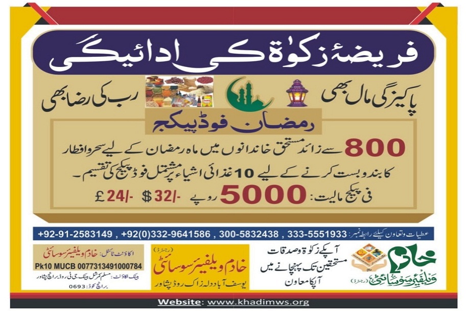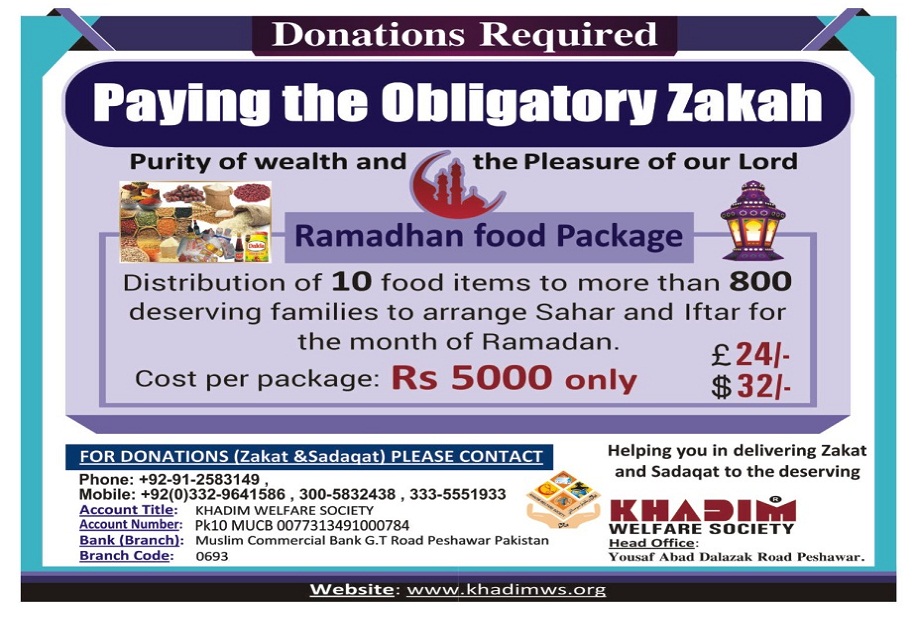 Ramzan Food Package is distributed to more than 800 families every Ramzan...